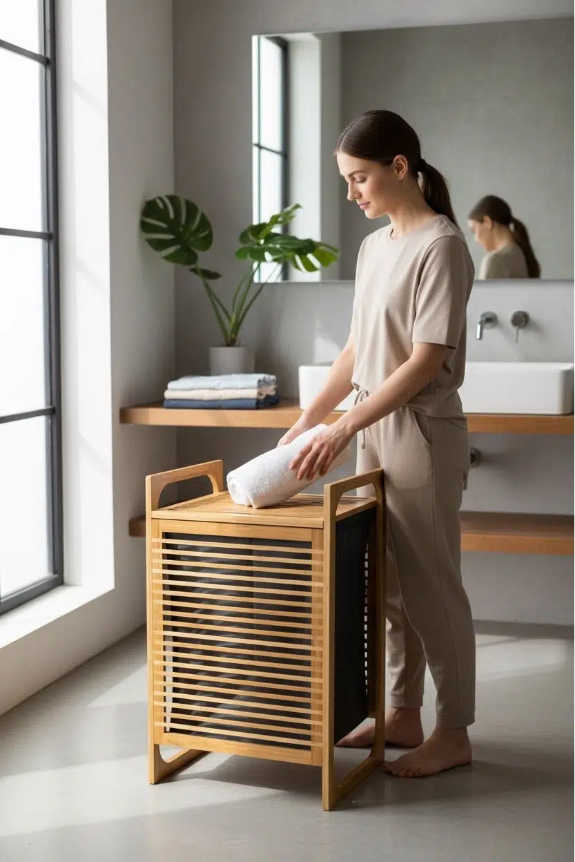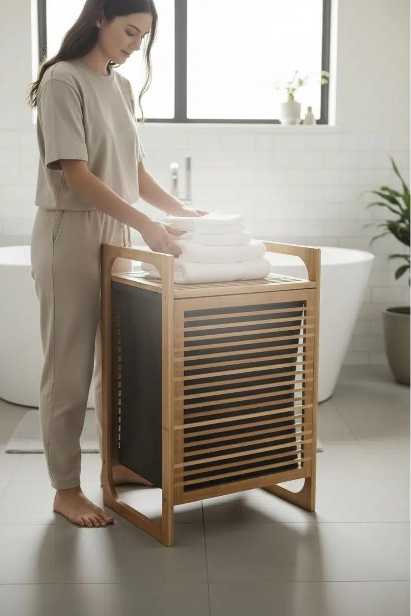 Bambu çamaşırlık - kirli çamaşır sepeti 40x40x61 cm.