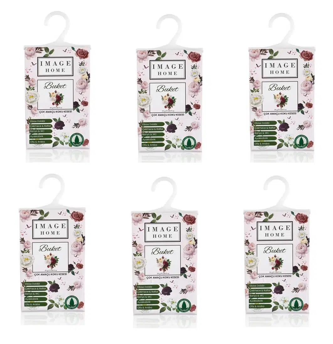 | Etiketler | Buket çok amaçlı koku kesesi -6 lı askılı dolap içi parfüm kokusu kesesi |