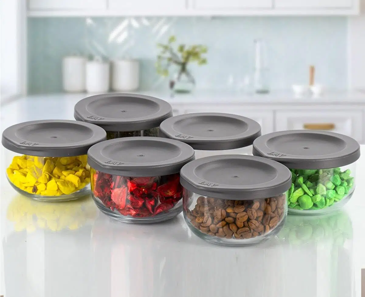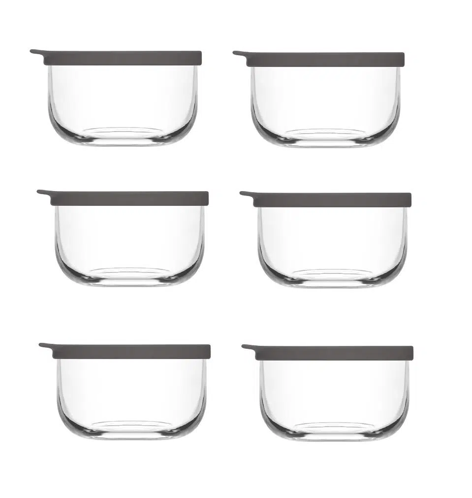 EtiketlerLav duo saklama kabı cam kahvaltılık 6 lı - yuvarlak saklama seti gri