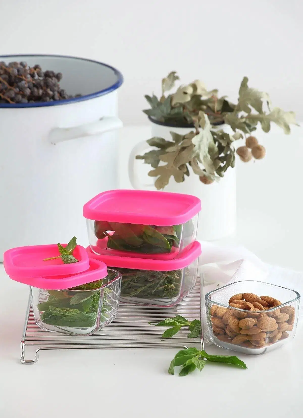 Lav saklama kabı cam kahvaltılık 4 lü - saklama seti 2 boy pembe