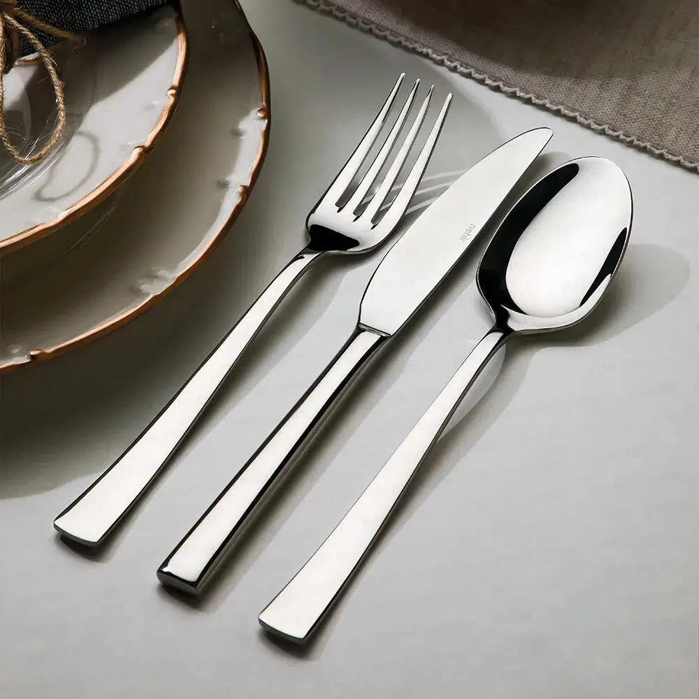 Nehir deniz 12 kişilik 77 parça bıçaklı kaşık çatal bıçak seti 18/10 cr-Ni paslanmaz çelikten üretilmiştir.Sade(parlak) yüzeylidir.50 yıl garantilidir.Nehir deniz sade 77 parça kutulu çatal kaşık set içeriği : 18/10 cr-Ni paslanmaz çelikten üretilmiştir.Bulaşık makinesinde hassas programda yıkanabilirler.50 yıl garantilidir. set içeriği :1 dz.12 adet yemek kaşık1 dz.12 adet yemek çatal1 dz.12 adet yemek bıçak1 dz.12 adet tatlı kaşık1 dz. 12 adet tatlı çatal1 dz. 12 adet çay kaşık 1 ad. Servis kepçe 1 ad. Servis kevgir 1 ad. Servis kaşık 1 ad. Servis çatal 1 ad. Servis kürek (18/10 cr-Ni) 304 kalite paslanmaz çeliğin özellikleri
