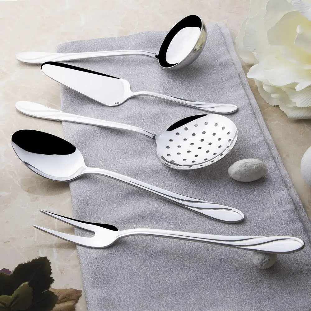 Nehir safir servis takımı - kepçe kevgir kaşık seti 5 parça