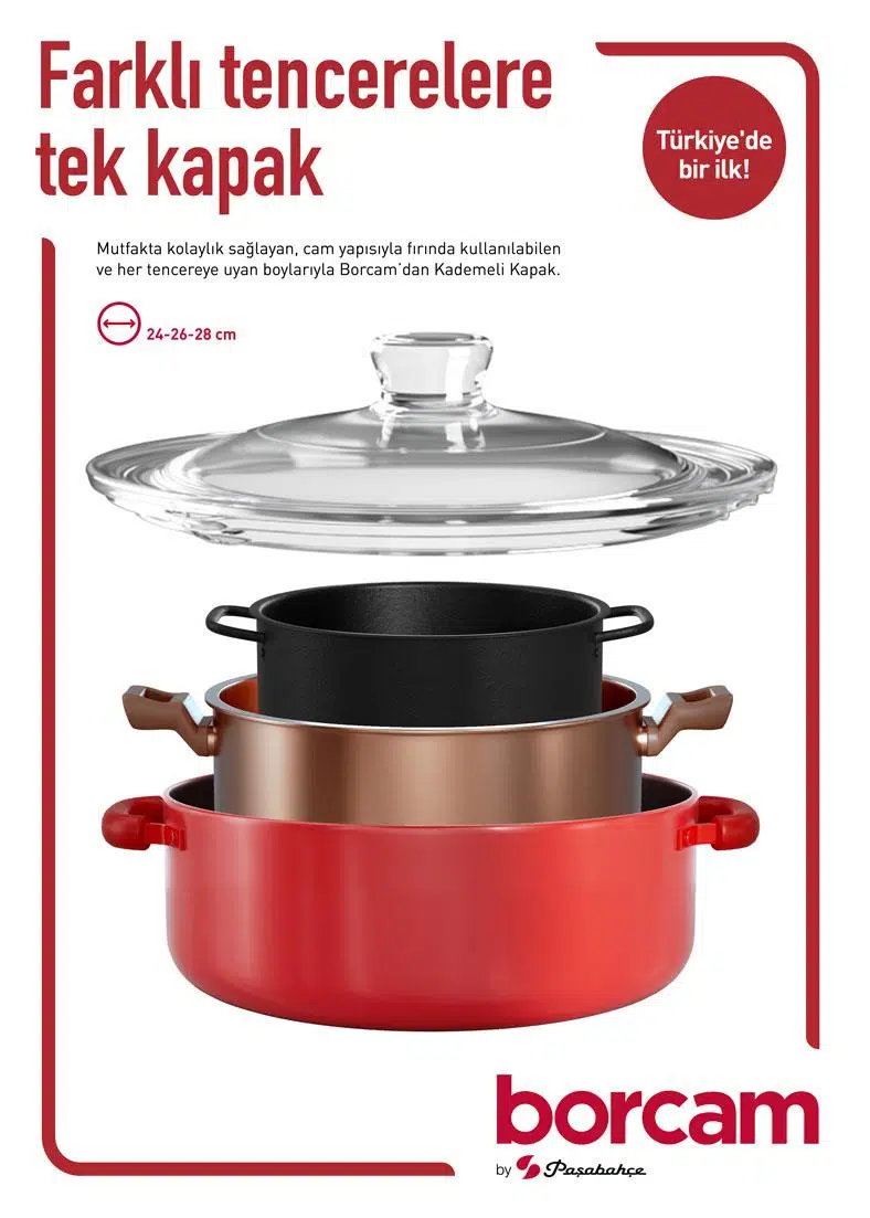 • Paşabahçe 590280 Borcam Kapak 24-26-28cm 24-26-28cm tencerelere uygundur 1 adet ürün fiyatıdır.