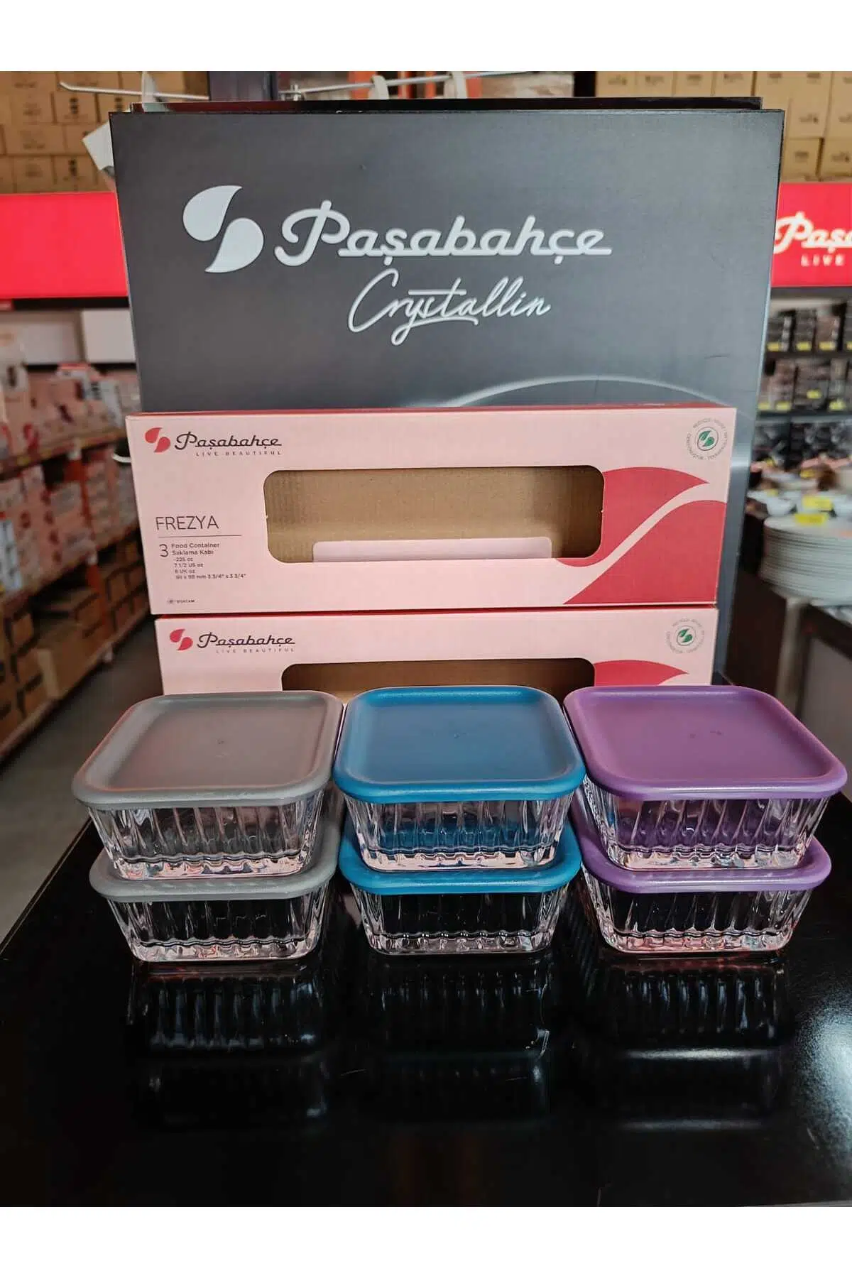 Etiketler | Paşabahçe frezya kapaklı cam saklama kabı 6 lı kahvaltılık 3 renk |